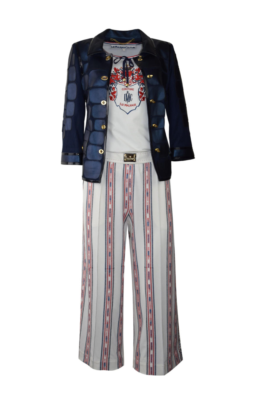 Palazzo-Hose, in Streifen bestickt und seitlicher LMC- Bordüre, (10 Std.Stickzeit), Singlejersey, mit elastischen Bündchen und LMC-Logo