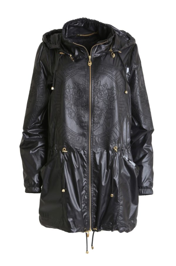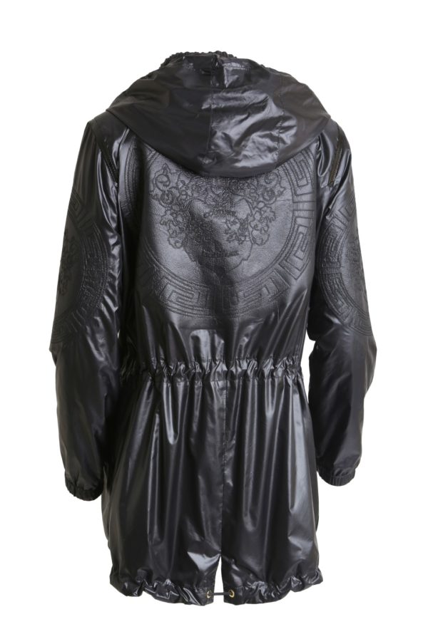 Dieser Parka aus doppelt verarbeiteter leichter Mikrofaser, die mit dem charakteristischen Liz Malraux Couture-Wappen 9-fach bestickt wurde, verfügt über