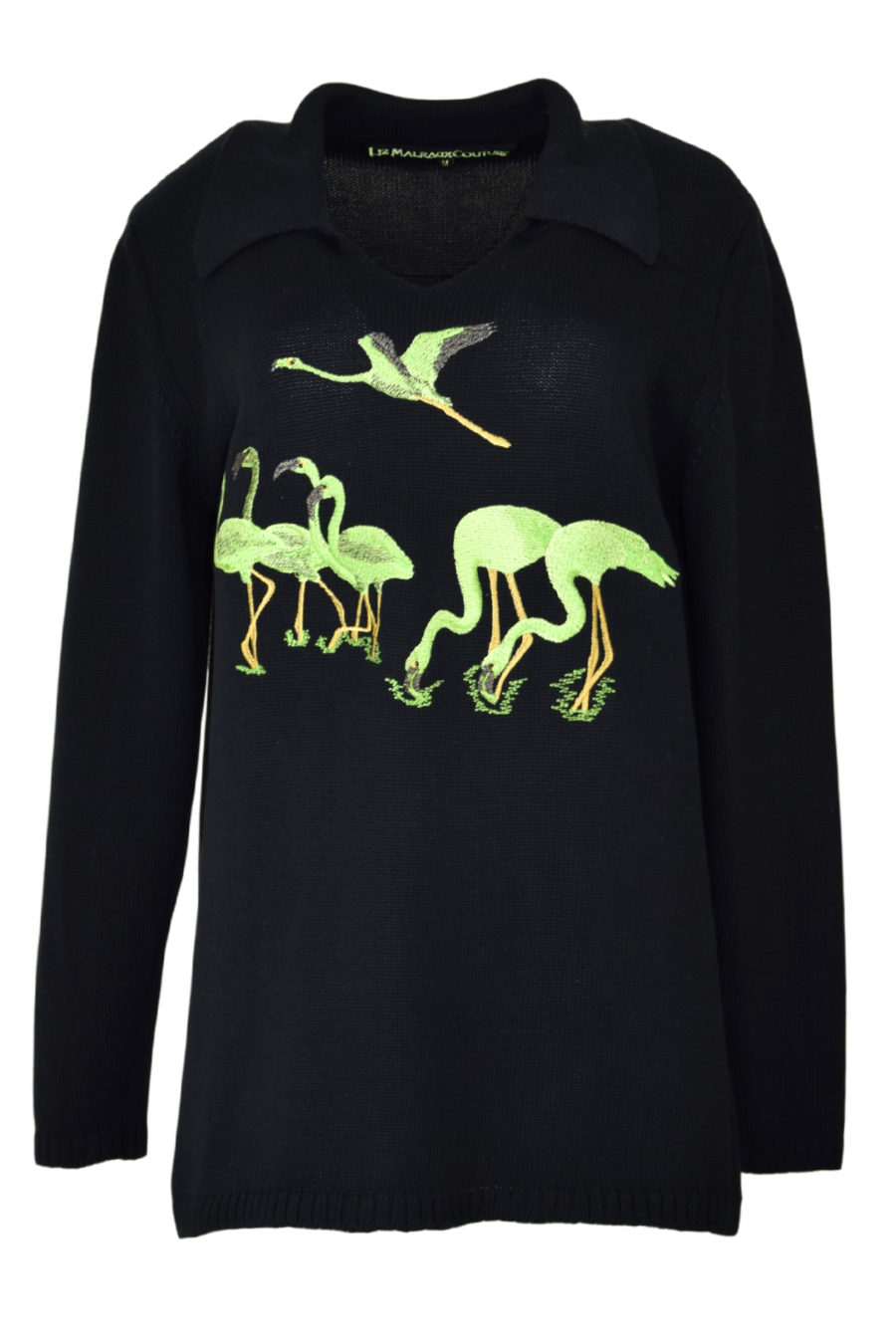 Pullover mit “flamingo-embroidery”, 100% Baumwolle, Langarm