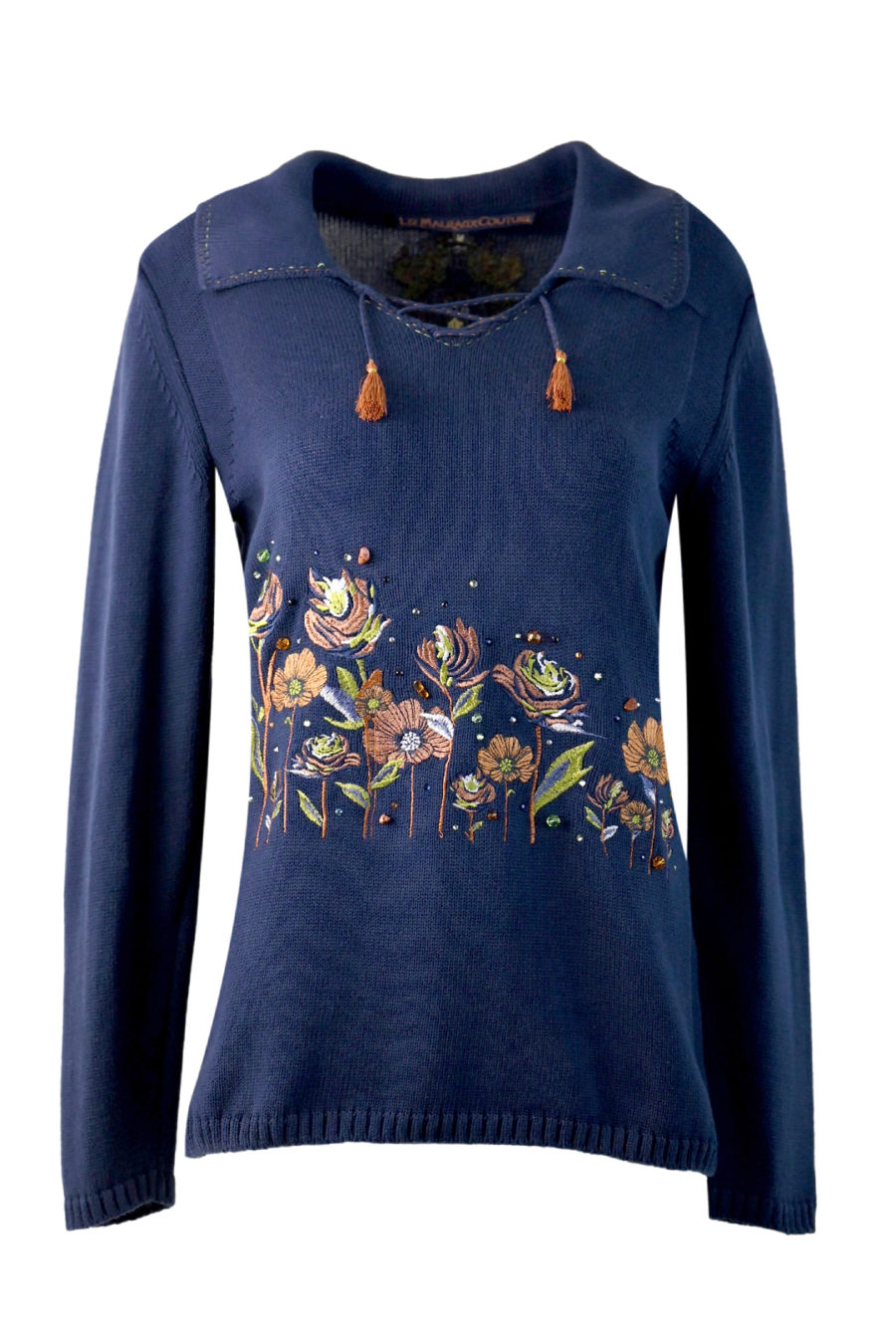 Pullover mit "autumn meadow-embroidery", 100% Baumwolle, Langarm