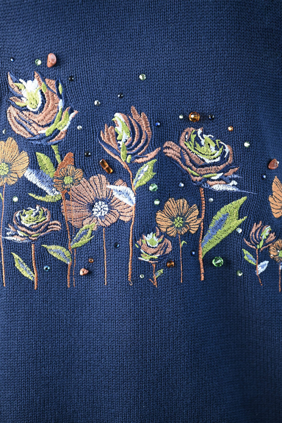 Langarm-Pullover mit “Autumn Meadow-embroidery”, handappliziert mit 50 Natursteinen und Kristallen, aus 100% Baumwolle und mit 72.000 Stichen bestickt