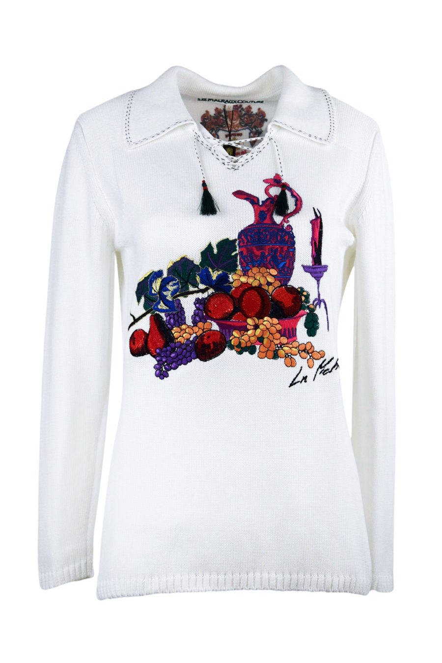 Pullover mit “still-life-embroidery”, 100% Baumwolle, Langarm, stitch:103.000