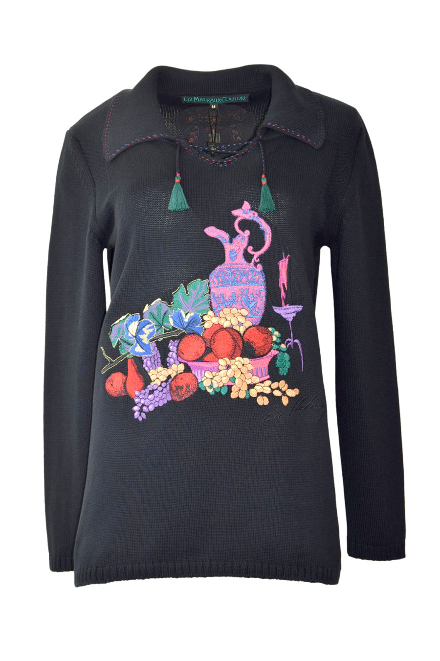 Pullover mit “still-life-embroidery”, 100% Baumwolle, Langarm, stitches: 103.000