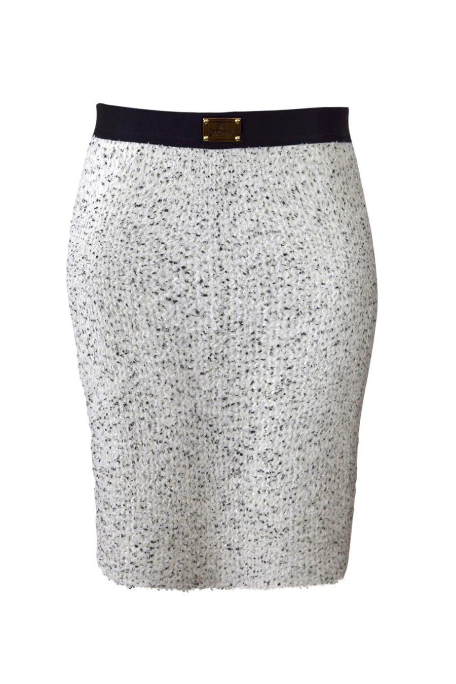 Rock, ecru mit schwarzen Kontrasten, elastisches Bouclé