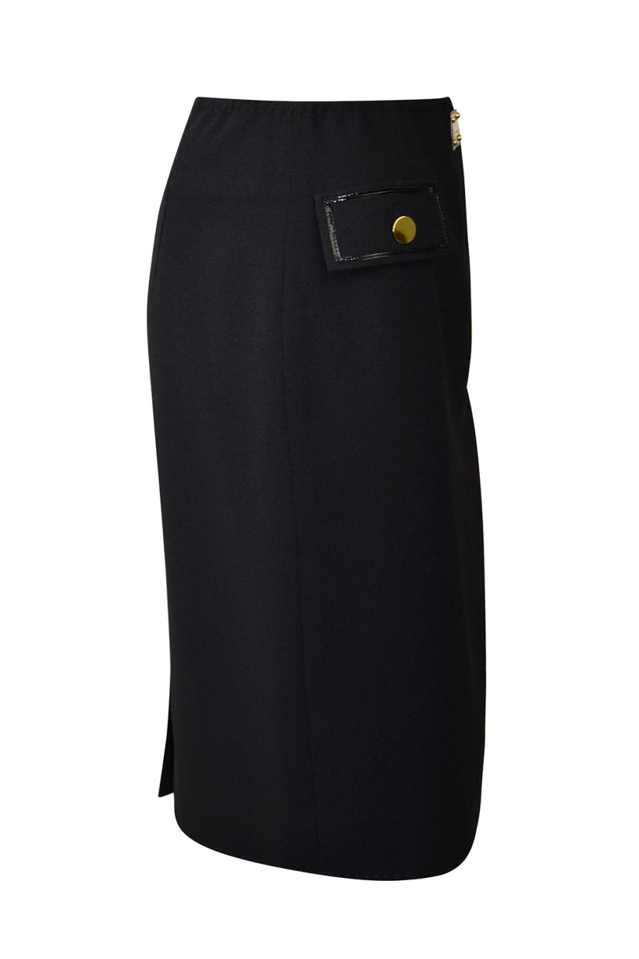 Rock mit Pattentaschen und Lackkontrasten, aus elastischen Cloqué