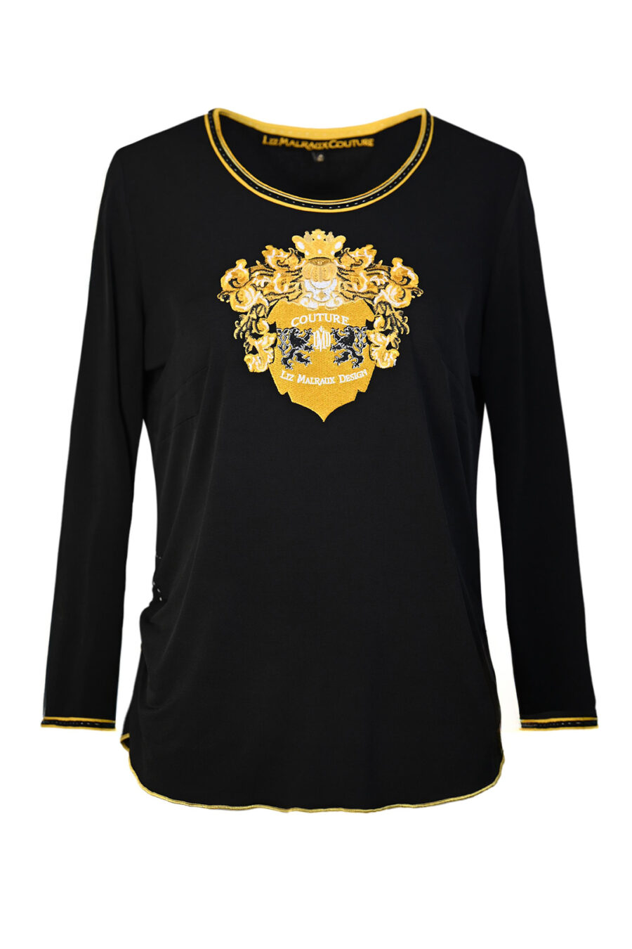 Shirt “Classic” mit “heraldic-embroidery”, zweifarbigen Kontrasten am Dekolleté und an den Ärmelabschlüssen, Langarm