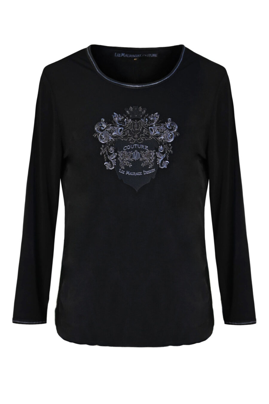 Shirt “Classic” mit “heraldic-embroidery”, zweifarbigen Kontrasten am Dekolleté und an den Ärmelabschlüssen, Langarm
