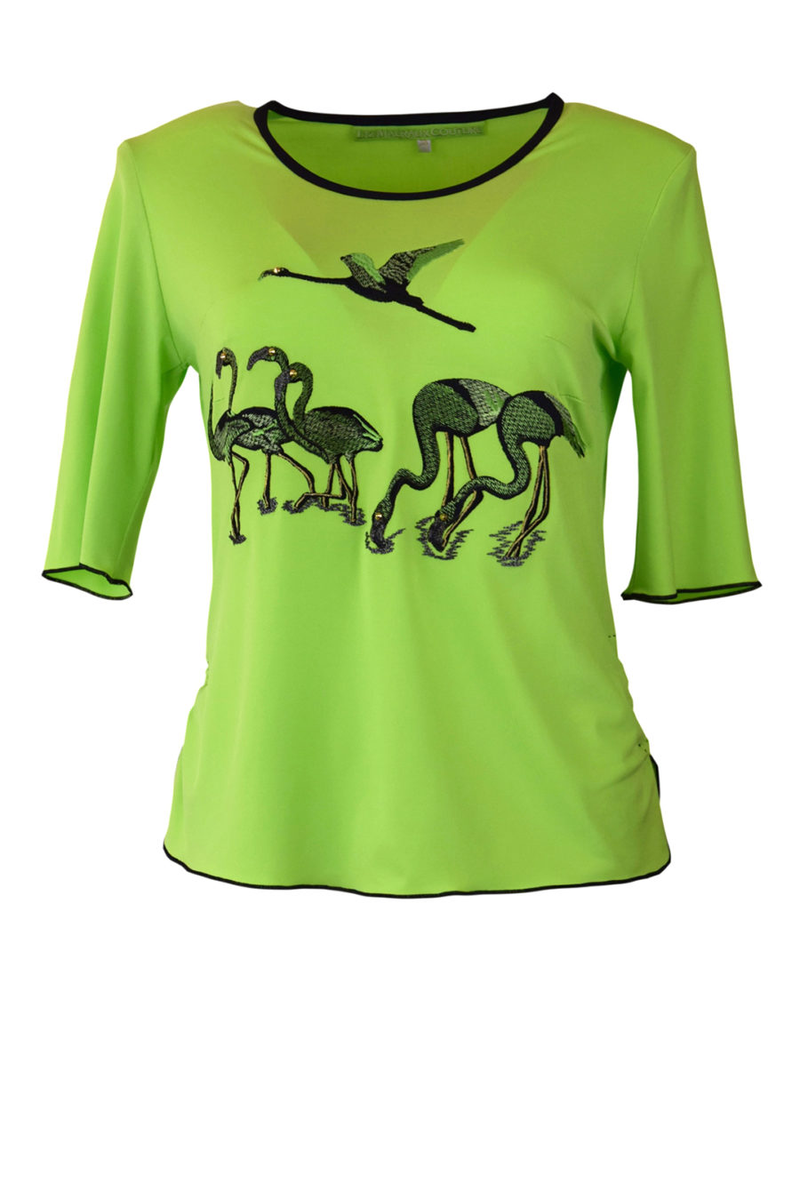 Das Shirt verfügt über seitliche Kordelzüge im Saumbereich, die eine Längenkorrektur ermöglichen und gleichzeitig eine modische Raffung entstehen lassen.