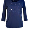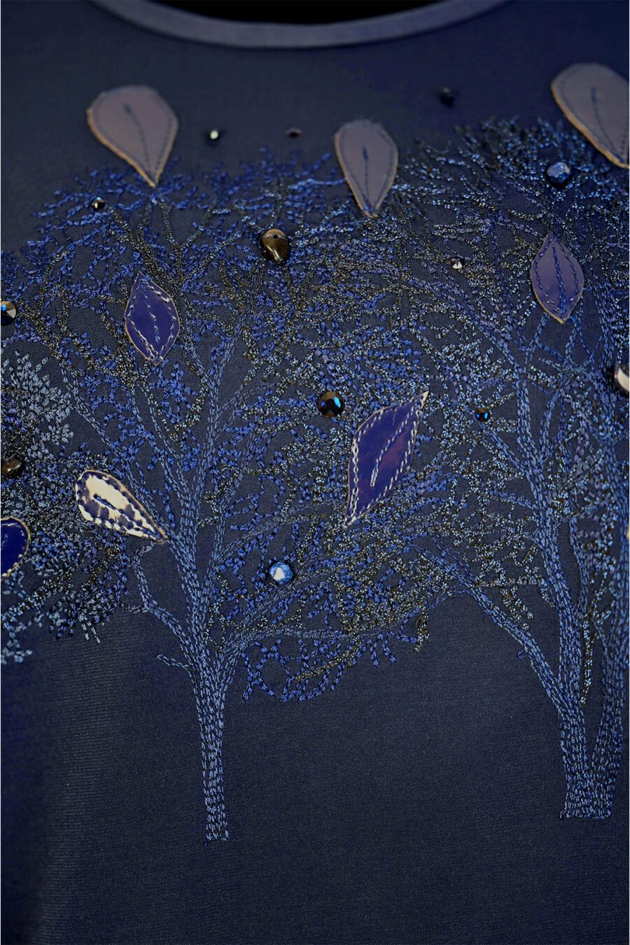 Shirt mit “forest-embroidery”, 25 Perlen und Kristallen, Lackblättern und Kontrasteinfassung, Langarm