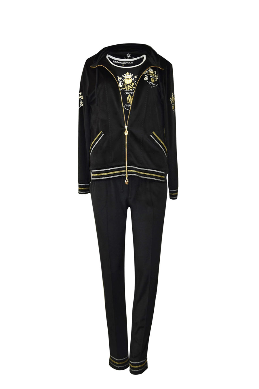 Hose in Jeansschnitt mit Goldecken und Zipp am Saum, Lackapplikationen, LMC-Logo, Mikrofaser