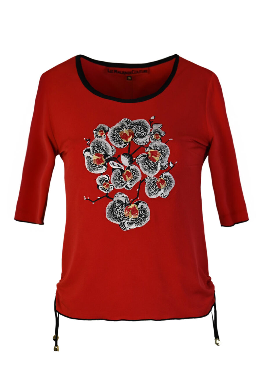 Shirt mit “orchidee-embroidery”, Kurzarm, Stitches:75000