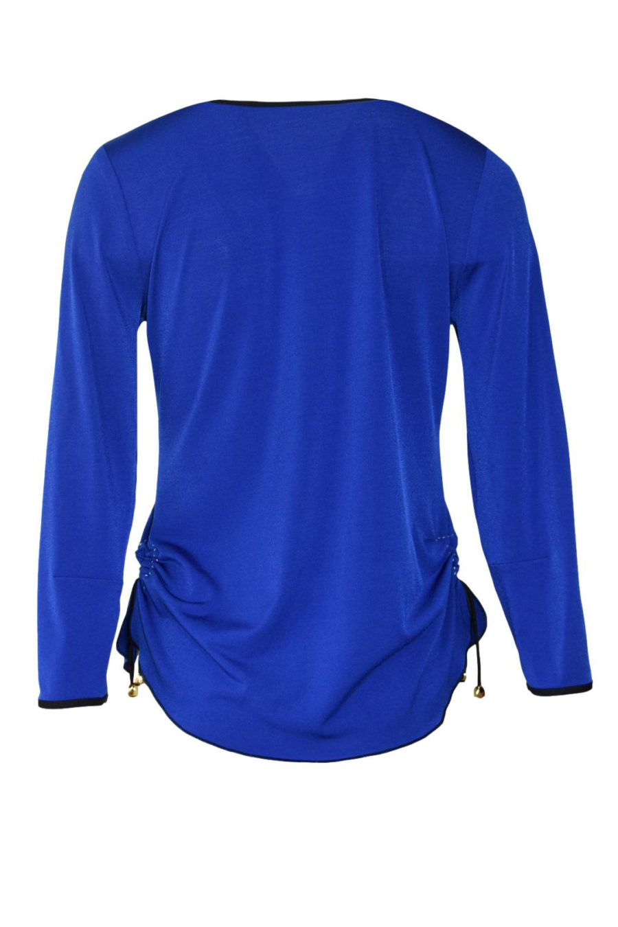 Das Shirt verfügt über seitliche Kordelzüge im Saumbereich, die eine Längenkorrektur ermöglichen und gleichzeitig eine modische Raffung entstehen lassen.