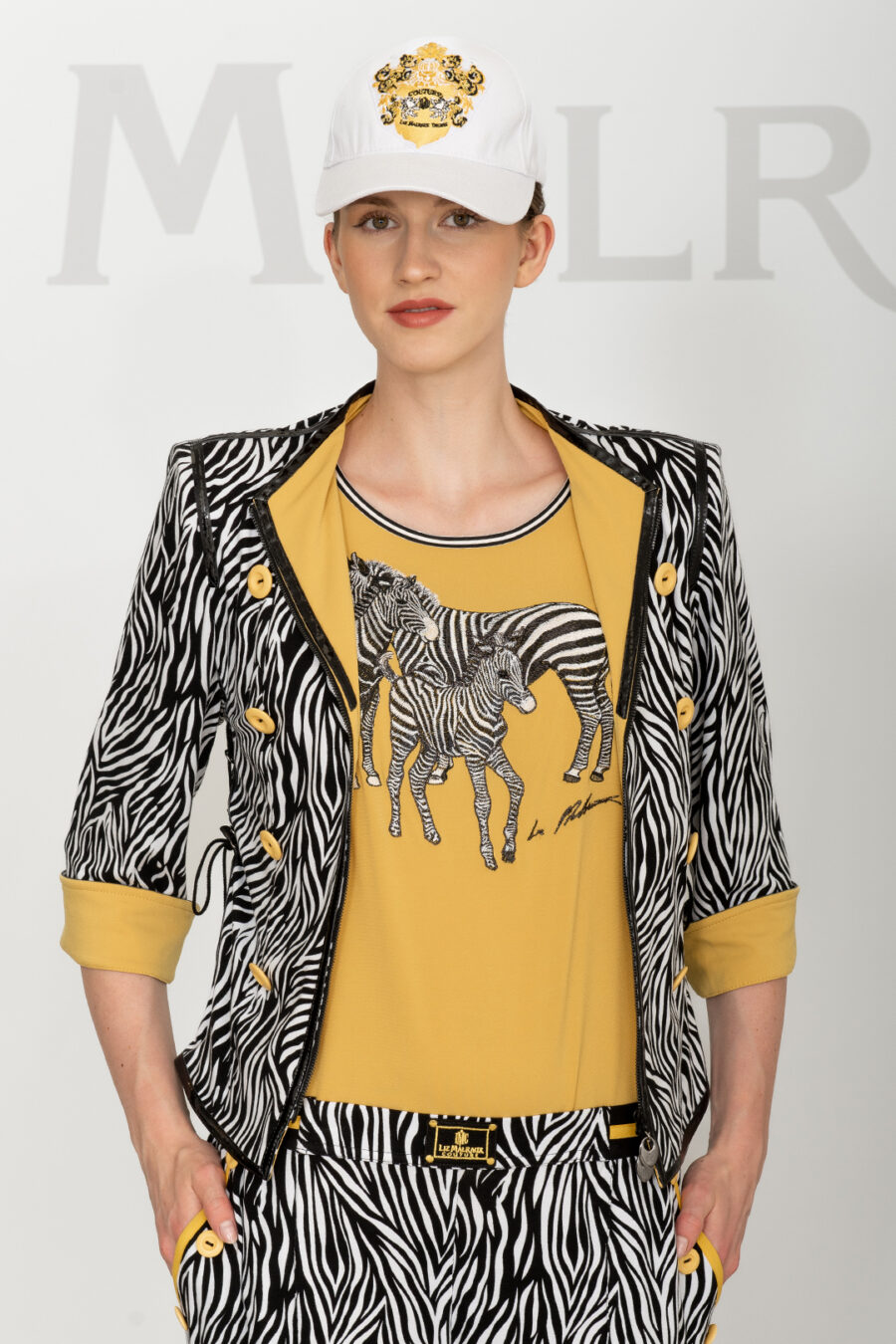 Shirt mit “zebra-embroidery” und zweifarbigen Kontrastbündchen, Kurzarm