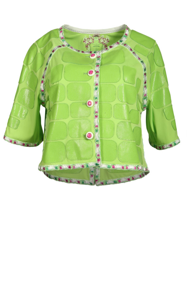Spencerjacke mit gestickter Bordüre, applitziert mit Lederpatches in Salamander-Optik, 3/4 Ärmel