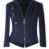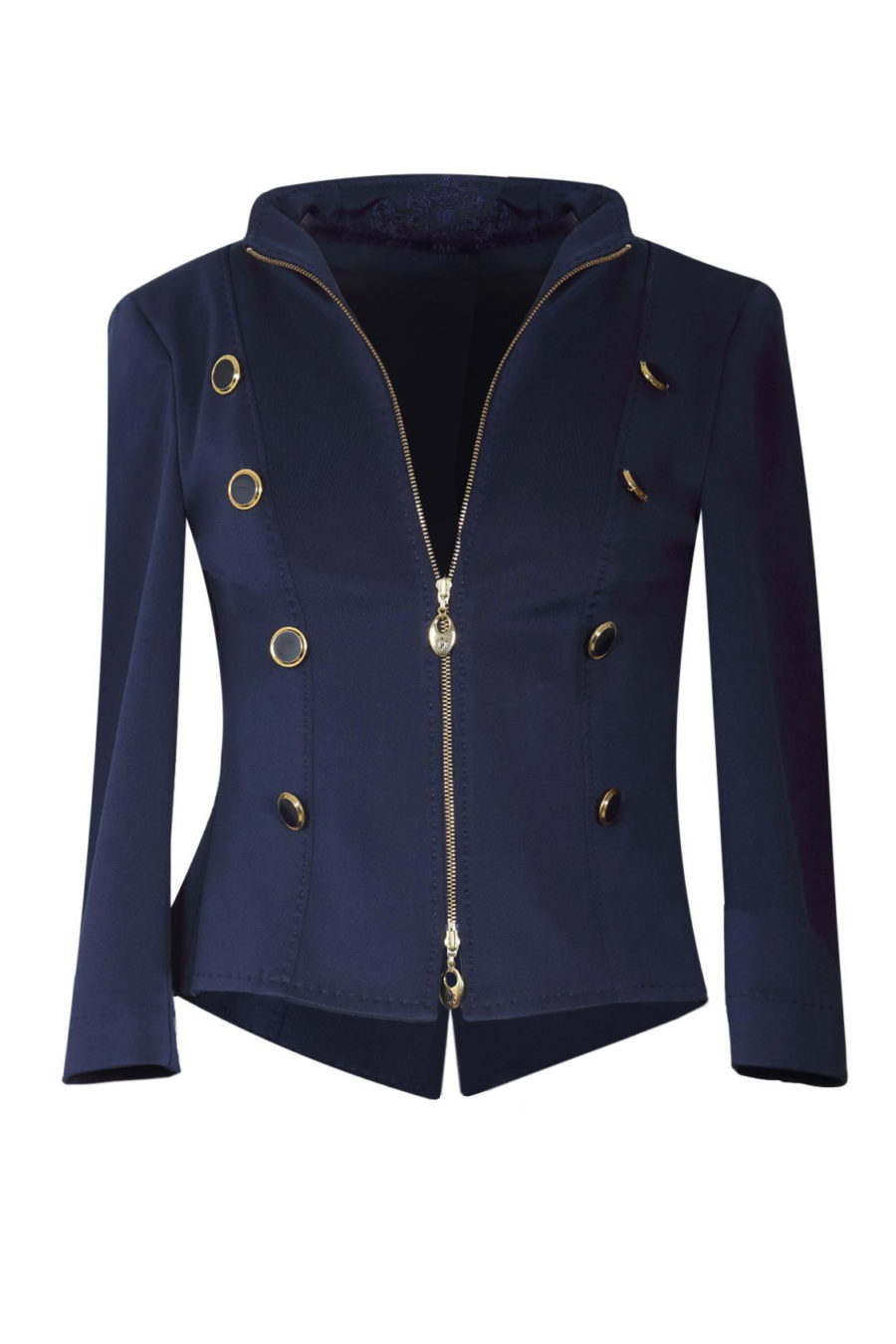 Verleihen Sie Ihrem Look eine elegante Note mit dieser stilvollen Spencerjacke. Die Jacke überzeugt durch ihr modernes Design mit 8 dekorativen Zierknöpfen und einem praktischen Reißverschluss auf der Vorderseite. Der angeschnittene Stehkragen sorgt für einen trendigen, zugleich komfortablen Sitz.