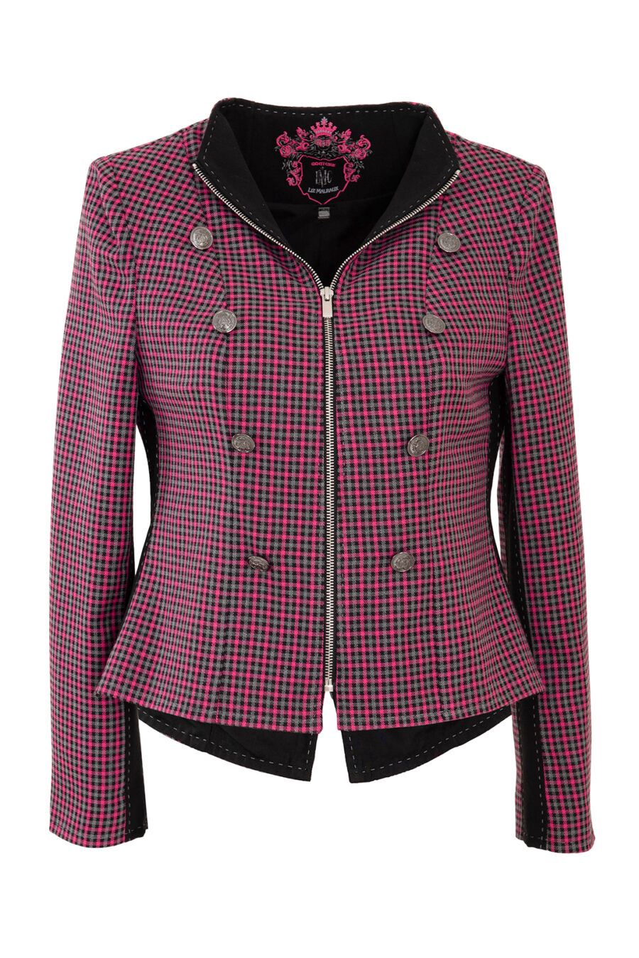 Spencerjacke aus Pepita Stoff mit schwarzen seitlichen Kontrasten und 8 Zierknöpfen, Futterstoff aus Viskose, Sicherheitstasche