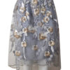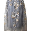 Der Rock präsentiert sich in einer hyperfemininen ausgestellten Silhouette aus bestickter Spitze, doppelt unterlegt.
