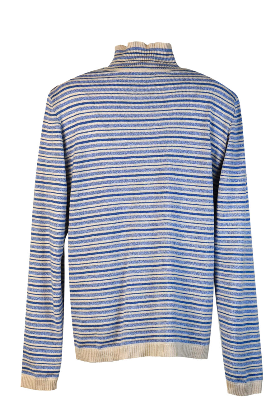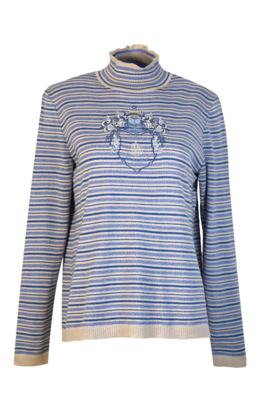 Streifen-Rolli aus Baumwolle-Seide-Kaschmir mit Heraldik-Stickerei
