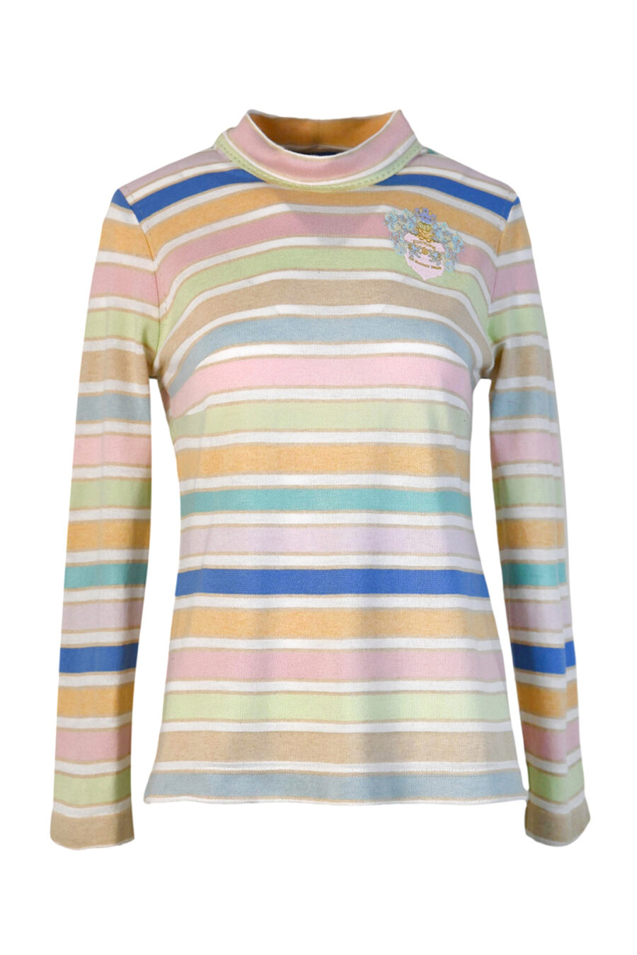 Streifenrolli aus Baumwolle, Kaschmir und Seide in pastell-multicolor mit gesticktem LMC-Wappen