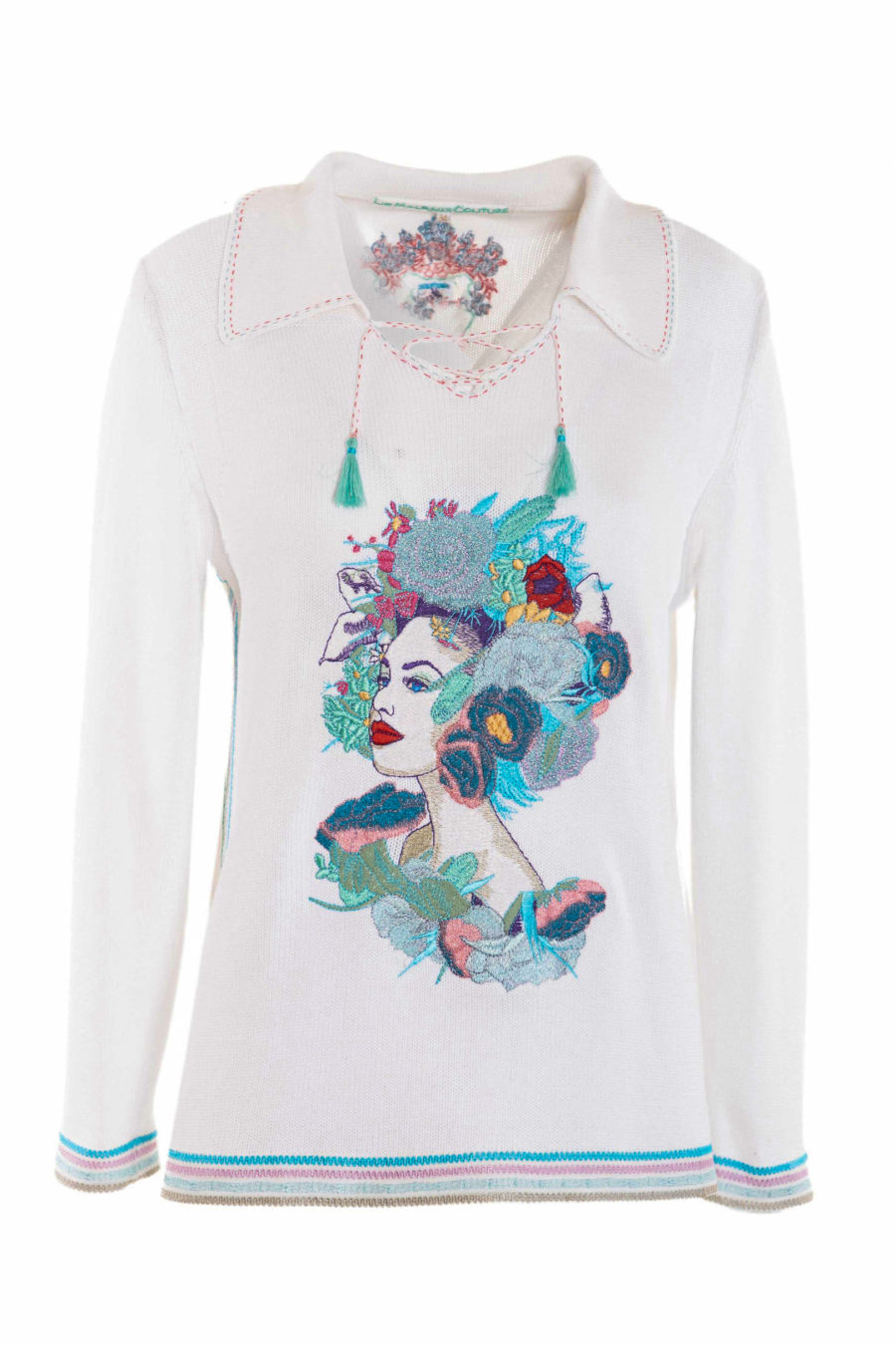 Pullover mit “Calypso-model embroidery”, 100% Baumwolle, Langarm