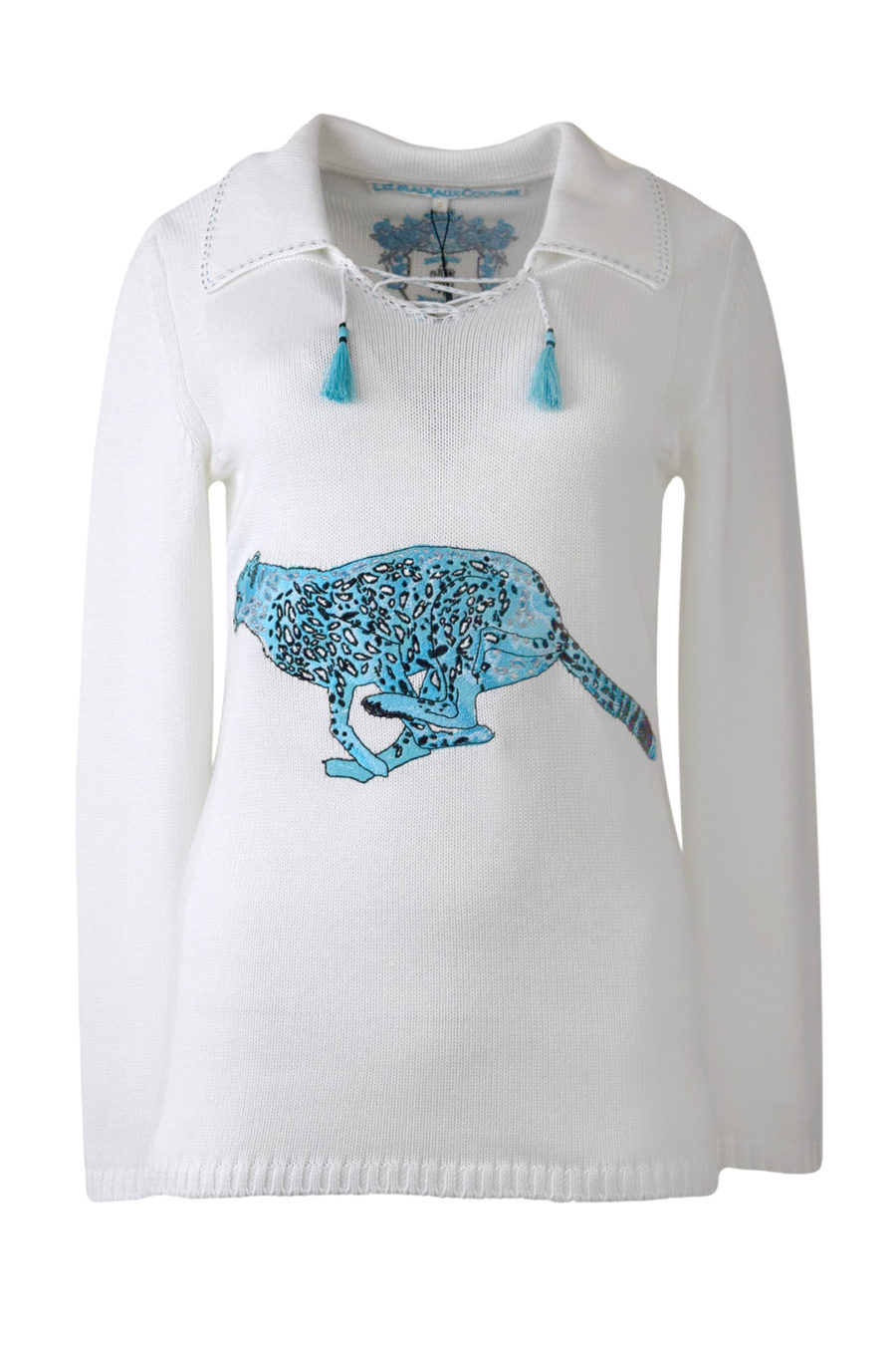 Pullover mit “gepard-embroidery”, 100% Baumwolle, Langarm