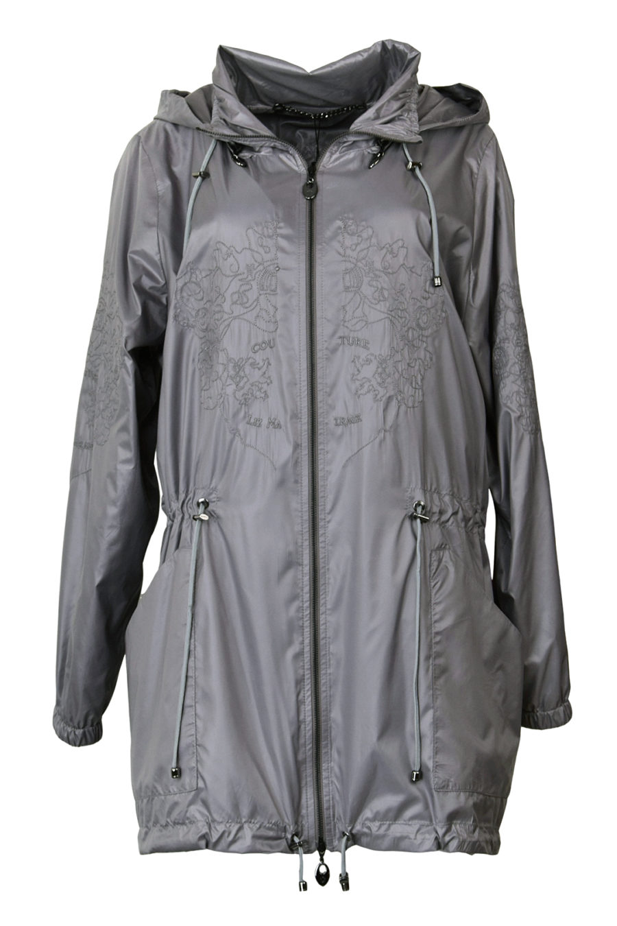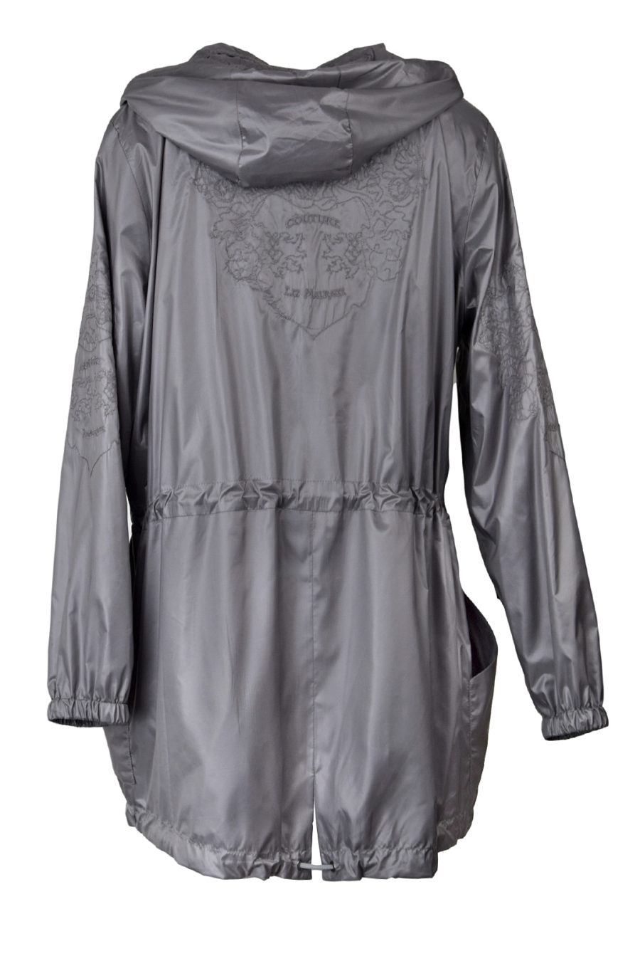 Dieser Parka aus doppelt verarbeiteter leichter Mikrofaser, die mit dem charakteristischen Liz Malraux Couture-Wappen 9-fach bestickt wurde, verfügt über
