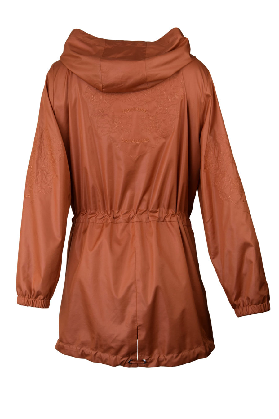 Dieser Parka aus doppelt verarbeiteter leichter Mikrofaser, die mit dem charakteristischen Liz Malraux Couture-Wappen 9-fach bestickt wurde, verfügt über