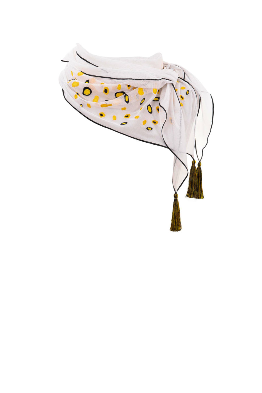 Tuch, Jersey mit “leo-embroidery”, und 3 Madeira Quasten
