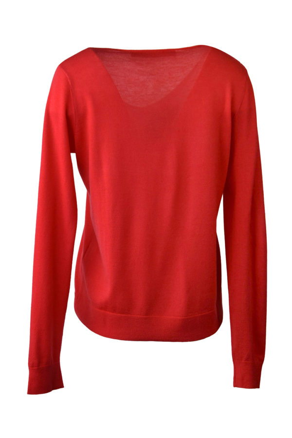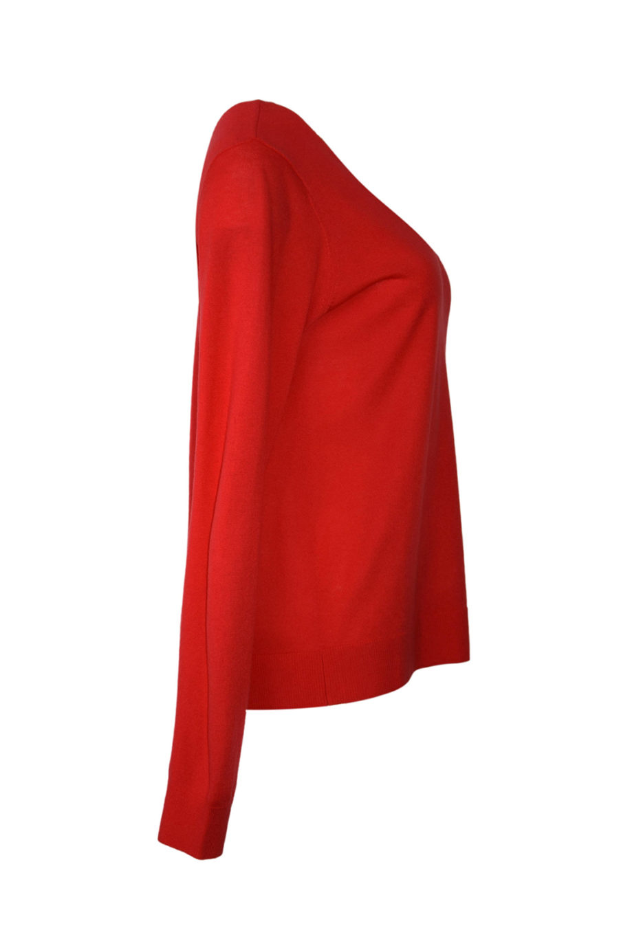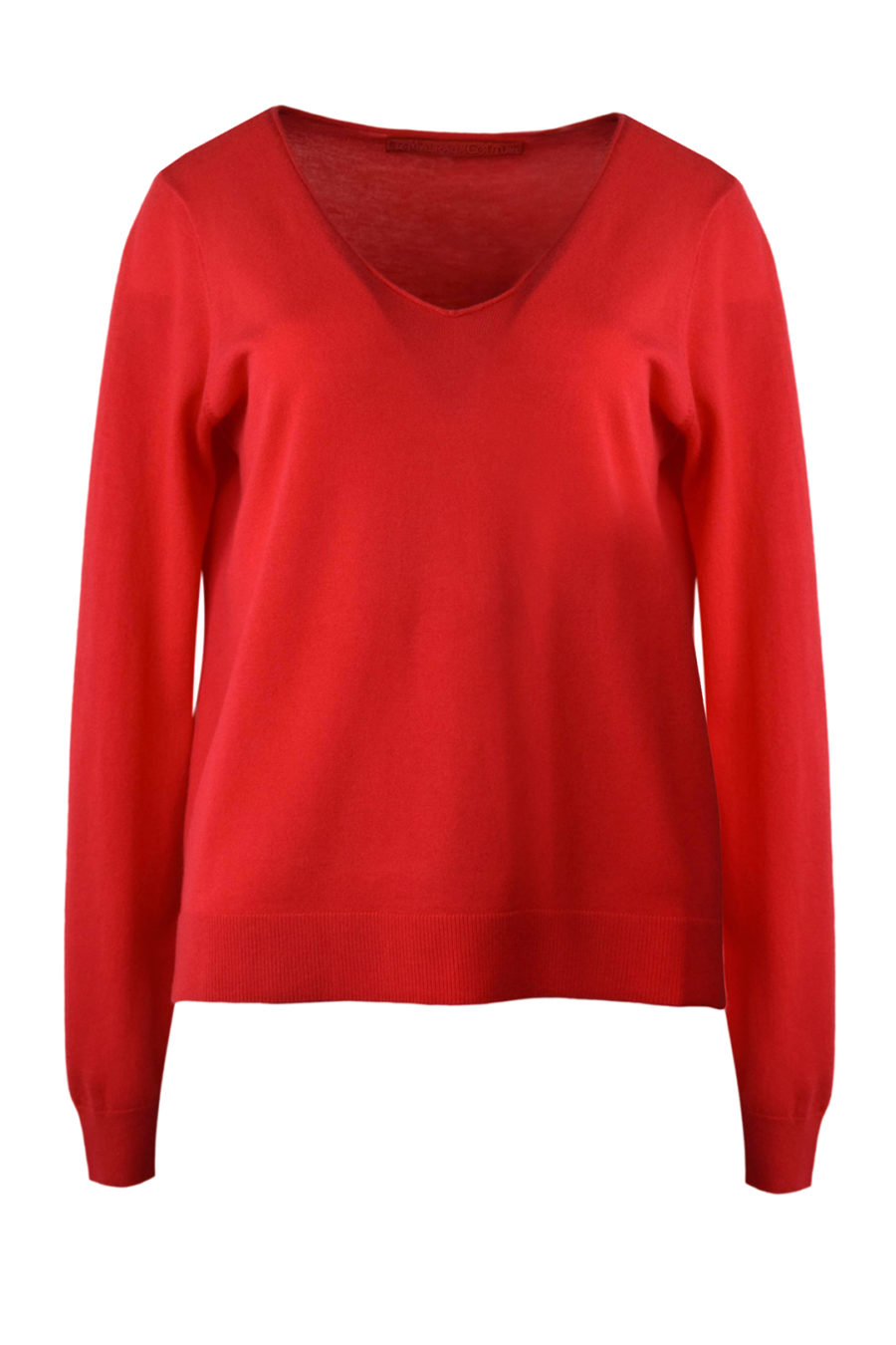 V-Pulli mit Rollkante am Ausschnitt, 100% Merino Extrafine, Langarm