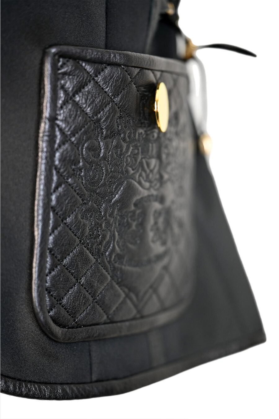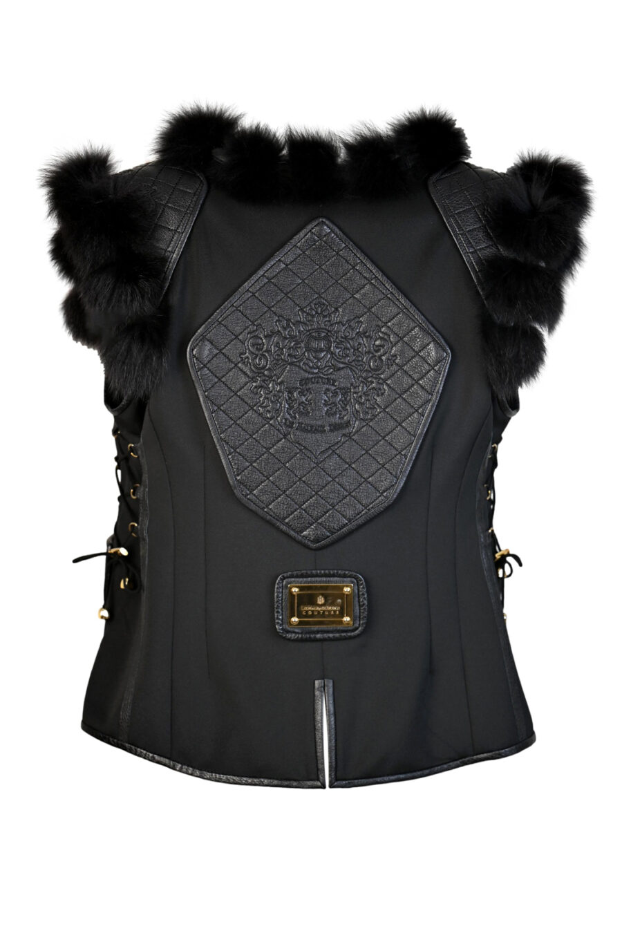 Weste aus Doublejersey mit geprägt gestickten Ledertaschen und Fuchsverbrämung, Multisize
