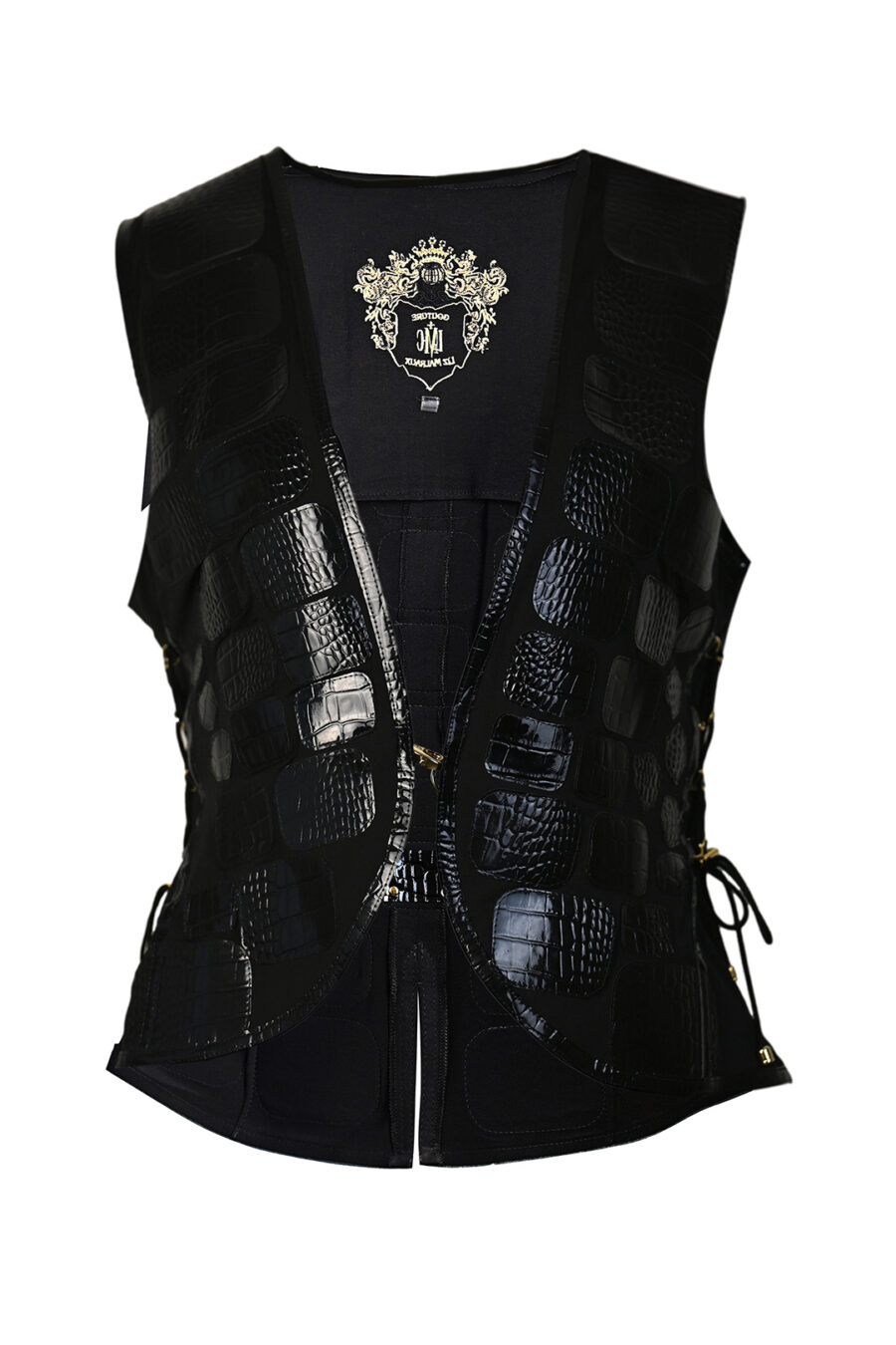 Weste aus Singlejersey mit Lederpatches in Kroko-Optik und einer Sicherheitstasche, Multisize